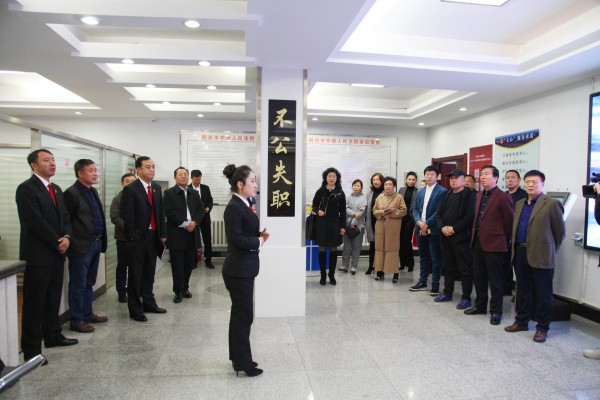 为深入贯彻习近平总书记在民营企业座谈会上的重要讲话精神,以实际行动为非公企业提供优质司法服务,11月2日上午,市工商联领导、工作人员、市知名企业代表共计20余人应邀走进鹤岗中院,参加主题为“优化营商环境,服务非公经济”的公众开放日活动暨优化营商环境新闻发布会,参观法院基础设施建设,诚恳征求意见建议。市法院党组成员、副院长鲁晓波,党组成员、执行局局长姚梦宇,党组成员、政治部主任苏道斌陪同。