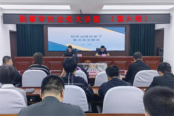 为深入贯彻习近平法治思想,扎实推进轻罪治理体系现代化,9月28日,鹤岗中院刑事审判二庭举办了全市法院第六期“刑事审判业务大讲堂”。本期讲堂由鹤岗中院刑事审判一庭副庭长相晓红主讲,题目为《轻罪治理背景下重点条文解读》,来自全市法院刑事条线法官及法官助理共30余人参加培训。