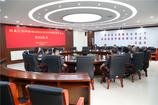 近日,鹤岗市、鸡西市、双鸭山市、七台河市“四煤城”法院在鸡西中院正式签订《法治化治理废弃煤矸石山框架协议》(下称《框架协议》)。“四煤城”法院郑重承诺,将在黑龙江高院指导下进一步加强交流与合作,共同探索废弃煤矸石山治理的有效途径,充分发挥人民法院环资审判能动履职作用,以法治之力守护绿水青山。