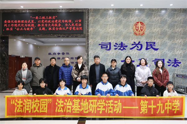 为切实增强青少年法治意识,引导其养成遵纪守法的行为习惯,11月4日,南山区人民法院邀请鹤岗市第十九中学师生代表走进法院,“零距离”感受司法庄严与温度。在讲解员的引导下,师生代表先后参观了潘英华工作室、诉讼服务中心、执行指挥中心及审判法庭等场所,通过实地观摩和互动讲解,沉浸式了解法院工作流程,切身感受司法的公正与温度。