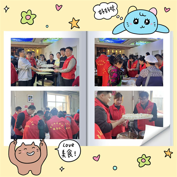 活动现场暖意融融,党员志愿者们分工明确、默契配合。和面、调馅、擀皮、包捏,大家围在桌前热火朝天地忙活起来。欢声笑语中,一个个形态各异的饺子陆续成型,很快摆满了餐盘。