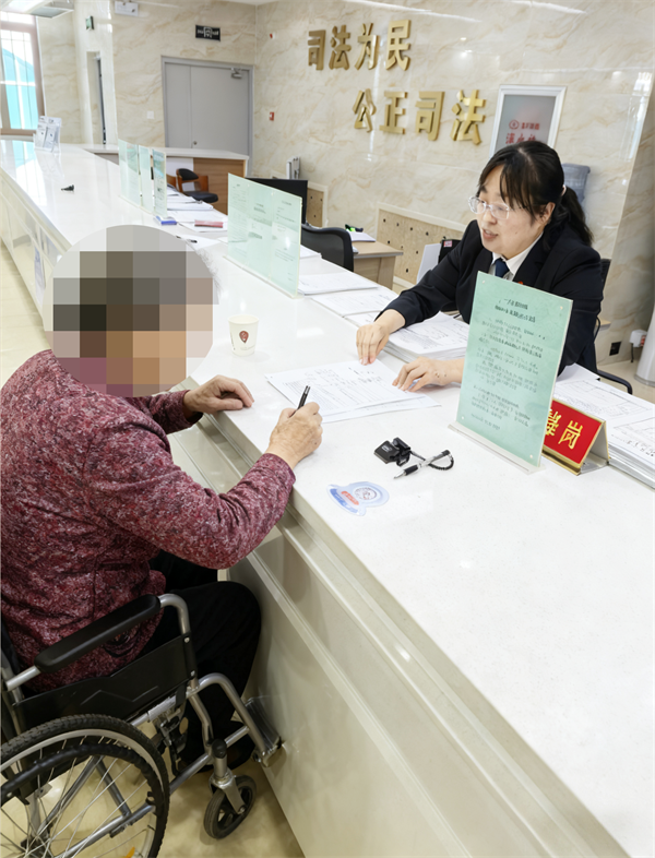 为追回欠款,孟某坐着轮椅,在邻里的帮扶下艰难地来到向阳区人民法院。可因为年事已高、行动不便,说不清借款的完整经过,刚到立案窗口就红了眼,握着轮椅的手也微微发颤。