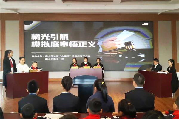 为全面加强辖区未成年人司法保护,推进少年审判工作深入发展,11月10日,南山区人民法院在逸夫小学组织开展了一场别开生面的模拟法庭活动。活动中,学生们分别扮演审判长、审判员、原告、被告、辩护人等角色,严格按照法定程序,完整模拟了从法庭调查、举证质证到法庭辩论、当庭宣判的庭审全流程。同学们神情专注、表达严谨,在沉浸式体验司法审判过程的同时,也深刻体会到法律的庄严与公正。