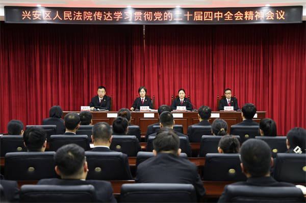 为深入学习贯彻党的二十届四中全会精神,切实把全体党员干警的思想和行动统一到党中央决策部署上来,兴安区人民法院召开专题会议,传达学习党的二十届四中全会精神。会议传达了习近平总书记在党的二十届四中全会上的重要讲话精神,组织学习了《中国共产党第二十届中央委员会第四次全体会议公报》《中共中央关于制定国民经济和社会发展第十五个五年规划的建议》等内容。结合工作实际,对全面深入学习和贯彻党的二十届四中全会精神,作出了系统部署。