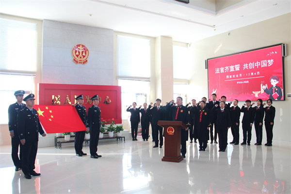 12月4日,围绕“学习宣传贯彻习近平法治思想,推动宪法深入人心”这一鲜明主题,工农区人民法院组织干警开展宪法宣誓活动。