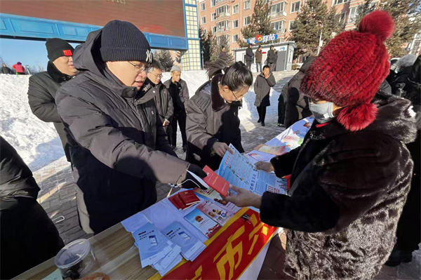 12月4日,兴安区人民法院组织干警积极参加鹤岗市司法局、市委依法治市委员会守法普法协调小组办公室联合兴安区开展的“弘扬宪法精神 建设法治鹤岗”集中宣传活动。