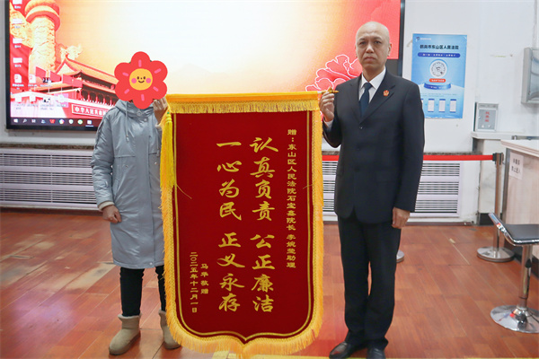 12月8日,当事人马某将一面锦旗送至鹤岗市东山区人民法院党组书记、院长石宝鑫手中,对法院公正高效化解纠纷表达诚挚感谢。马某与某村委会土地承包经营权纠纷一案,因涉及历史遗留问题,加之马某家庭经济困难,案件办理难度进一步加大。受理该案后,石宝鑫院长依法为马某减免了诉讼费用,判决作出后,多次接待双方当事人,并开展实地走访调解,最终促成案件执行和解。该案的成功化解,实现了法律效果、社会效果与政治效果的有机统一,是法院有效破解复杂类案、深入践行司法为民宗旨的生动体现。