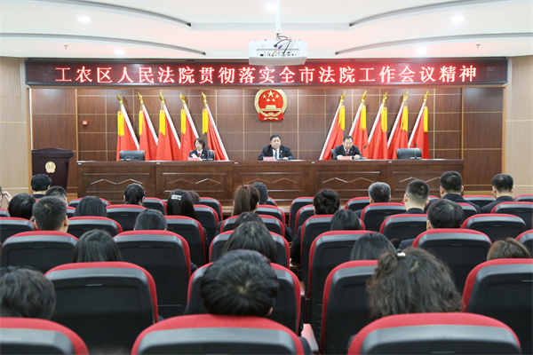 12月9日,工农区人民法院召开贯彻落实全市法院工作会议精神专题会议,党组书记、院长高天麒就上级法院工作会议精神进行了传达解读。会议强调,全院干警要深刻领会会议精神,紧密联系工作实际,系统谋划工作重点任务,以务实举措狠抓贯彻落实,确保会议精神不折不扣落地见效,奋力推动法院各项工作高质量发展。