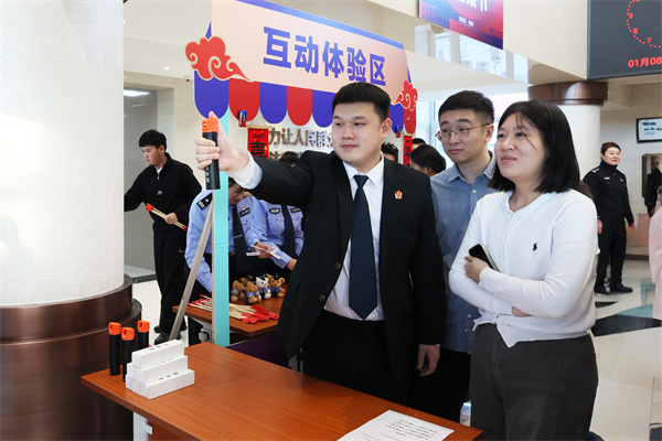 1月8日15时,鹤岗中院庆祝第六个人民警察节“警营文化大集”盛大开幕。院党组一行率先体验四大展区,随后干警轮番闯关,笑声掌声此起彼伏。