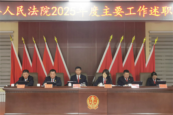 近日,为保障2026年各项工作平稳开局、扎实起步,萝北县人民法院组织召开了2025年度主要工作述职会议。会议系统总结了过去一年各项工作的开展成效与经验,并结合当前形势与任务要求,对2026年度工作思路与重点任务进行了科学谋划和部署安排。党组书记、院长徐海斌主持会议并讲话,全体班子成员及中层干部参加会议。