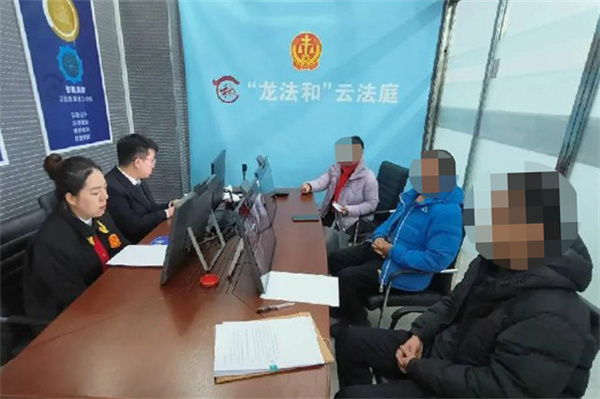 考虑到被告刘某柱白天务工,旷工一日便意味着损失数百元收入,为最大限度减少对当事人生活与工作的影响,同时高效推进案件审理,承办法官王书婷主动放弃休息时间,依托“龙法和”云法庭线上开庭功能,在晚上组织双方隔空进行庭审。