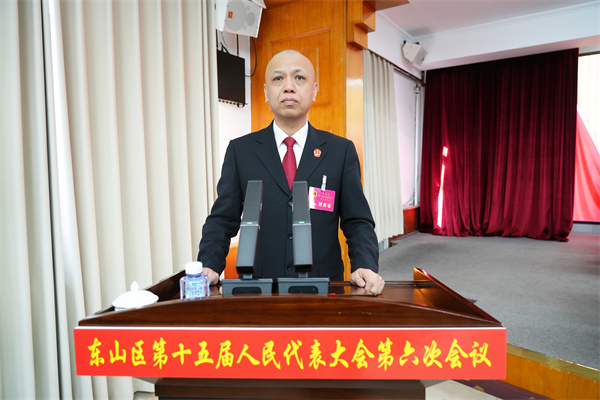 2026年1月23日上午,东山区人民法院党组书记、院长石宝鑫在东山区第十五届人民代表大会第六次会议上作2025年法院工作报告,经会议表决,报告获全票通过。