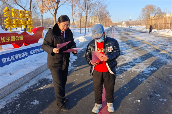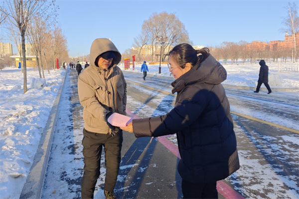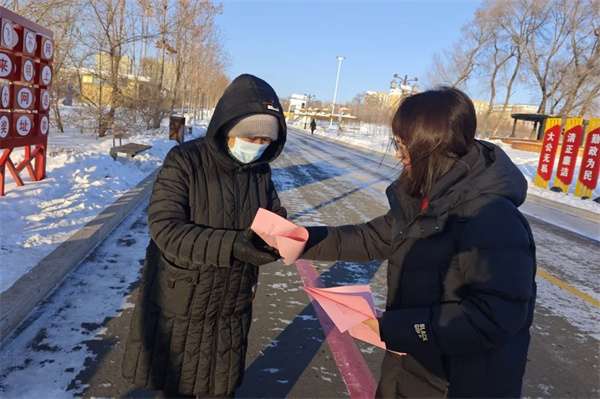 干警们结合近年来审理的典型案例,用通俗易懂的语言,面对面地揭非法集资的常见手法、主要特征和社会危害,重点讲解了以“投资项目”“委托理财”“养老保健”“虚拟货币”等为名的新、老骗局,嘱咐叔叔阿姨守护好自己的“钱袋子”。面对干警们不顾严寒开展的宣传活动,路过百姓纷纷点赞。
