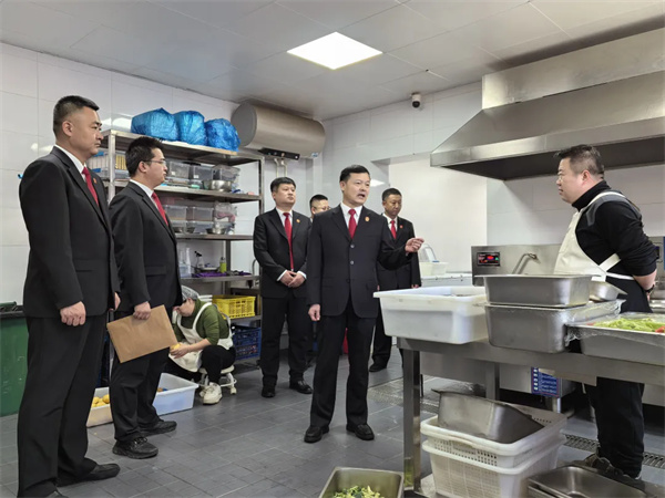 在食堂,检查组重点检查食品安全、用电用气安全及环境卫生,查看食材储存加工规范、管线完好度、消防器材有效性及消毒记录,要求工作人员严把食材采购加工关,杜绝过期变质食材,规范用电用气操作,做好日常安全自查,守护干警“舌尖上的安全”。
