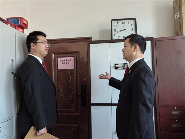 在机要办公室,检查组全面检查保密设施、文件存放及用电安全,核查涉密文件收发、保管、销毁等流程规范度,强调要绷紧保密与用电安全两根弦,落实相关责任制,加强涉密人员管理,杜绝各类隐患,确保机要工作万无一失。