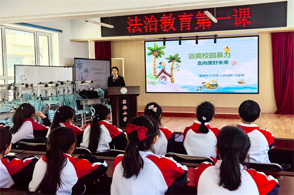 3月2日,为增强青少年法治观念,营造平安和谐的校园环境,工农区人民法院干警付佳琪走进实验小学,为该校130名师生带来新学期第一堂法治教育课,付佳琪围绕“远离校园暴力,走向美好未来”这一主题,深入浅出地讲解了相关的法律知识,引导同学们树立正确的法治观念,用法治阳光照亮青少年成长之路。