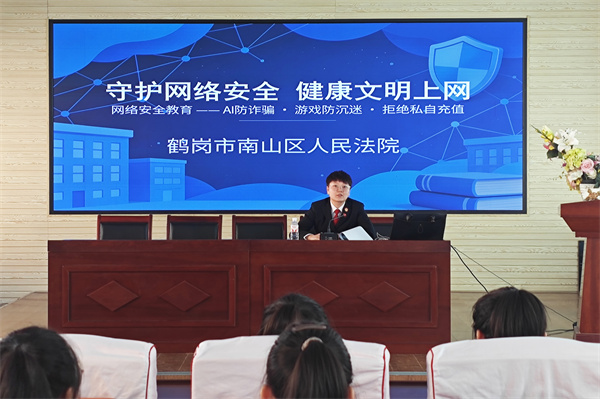 为深入贯彻落实《未成年人网络保护条例》,扎实推进“法治宣传进校园”活动走深走实,3月5日,南山区法院法官走进鹤岗市第二十四中学,为孩子们送上一堂生动有趣、干货满满的“开学法治第一课”。课堂上,法官以网络安全法、未成年人网络保护条例等法律法规为重点,结合真实案例,用通俗易懂的语言讲解了网络诈骗、网络欺凌等常见犯罪的作案手法与现实危害,让同学们清晰认识到网络行为的法律边界,为同学们健康上网提供明确指引。