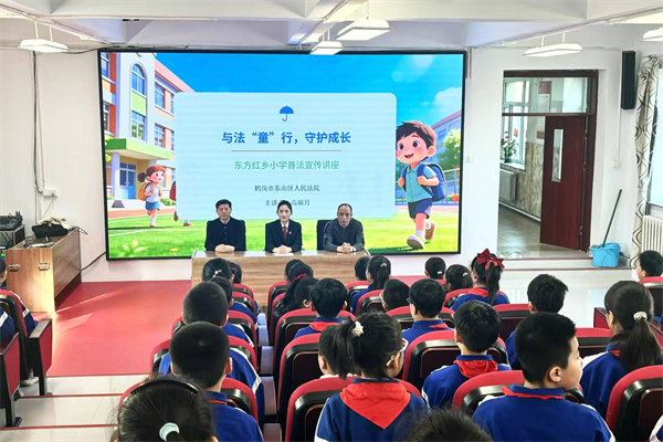 为进一步增强未成年人法治意识,提升自我保护能力,东山区人民法院坚持党建引领,充分发挥“蒲公英司法服务队”先锋模范作用,组织干警走进鹤岗市东方红乡中心小学,为同学们带来了一堂生动有趣、干货满满的法治公开课,以法为翼,守护少年儿童健康成长。