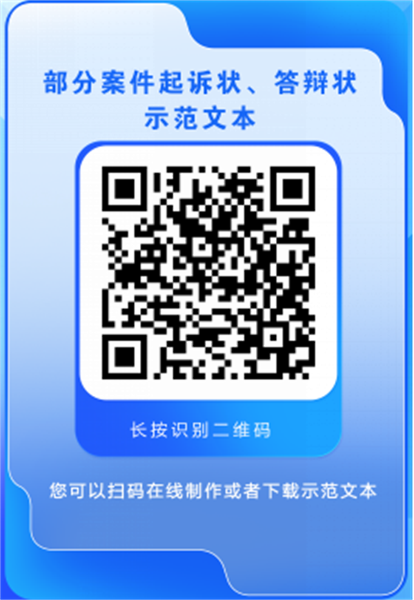 1、微信公众号扫码下载:关注“鹤岗市中级人民法院”官方微信公众号,扫描下方二维码,初次扫码需要填写个人身份认证等信息,填写完毕后再次扫码即可直达这67类起诉状、答辩状示范文本。也可以选择“在线制作”,只需要勾选符合自身情况的选项,即可生成所需文本。